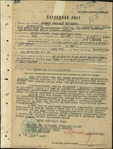 Наградной лист А. И. Крайнова