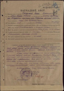 Наградной лист А. В. Сабашникова
