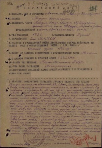 Наградной лист В. Д. Анисимова