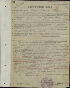 Наградной лист Н. Ф. Волкова