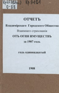 ОТЧЕТЪ Владимірскаго Городского Общества Взаимнаго страхованія ОТЪ ОГНЯ ИМУЩЕСТВЪ за 1907 годъ годъ одиннадцатый 1908