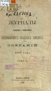 ЖУРНАЛЫ ОЧЕРЕДНОГ О и ЧРЕ З ВЫЧАЙНАГ О ВЯЗНЙКОВСКИХ Ъ УѢЗ ДНЫХЪ ЗЕМСКЙХ Ъ V .тантсл,, С О Б Р А Н І Й 1 9 0 7 Г О Д А . Т о м ъ II. Г * ' * ••••''•••/ > --ѵ%. ' \ " ' 1 ' ' ' » ^ ' ѵ - Г ^ Ц ^ * ^ ! ^ ^ - | Иікт -ая Ь | і Бладиміръ на Клязьмѣ. • Тиио-чіггографія губернской земской управы. 1 9 0 3.