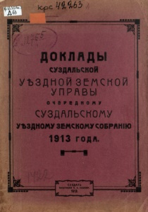 Д О К Л А Д Ы СУЗДАЛЬСКОЙ У Ъ З Д Н О Й земской У П Р А В Ы О Ч Е Р Е Д Н О М У СУЗДАЛЬСКОМУ УЪЗДНОМУ ЗЕМСКОМУ СОБРАНИЮ 1913 ГОДА. • СУЗДАЛЬ Типография И.В. Коздлва 1913. Я \