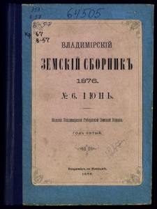 pr штшштшш ЗЕМСКІЙ СВОРНИКЪ 1 ¥ 6~І Ю Н Ь. к\ Иэданіѳ Владимірской Губернской Земской Управы, годъ пятыи. Владпіміръ ва КдязыгЬ. Типографія ГубернскойЗемсвой Управы. 18 7 6.