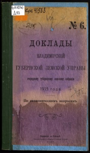 (р.в.9&?а) Щ чт MM V №6. ДОКЛАДЫ ВЛАДЙЖРСКОЙ ГУБЕРНСКОИ ЗЕМСКОЙ УПРАВЫ очередному губернскому земскому собранію ' 915 года. ческимъ вопросамъ. эі^ Бладиміръ на Клязьмѣ, <ііо-лтографія іубернскоіі земской управы I Ѳ I в.