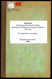 щмм Доклады Владимирской Земской Управы очередному губернскому земскому собранию 1909 года. По страховому отделению. Владимир на Клязьме. 1909.