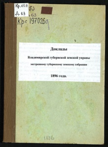 Kp.65.9 і 63 с 197026 Доклады Владимирской губернской земской управы экстренному губёрнскому земскому собранию 1896 года.