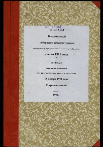 ДОКЛАДЫ Владимирской губернской земской управы очередному губернскому земскому собранию сессии 1911 года и ЖУРНАЛ заседания комиссии ПО НАРОДНОМУ ОБРАЗОВАНИЮ 18 ноября 1911 года С приложениями 1911.