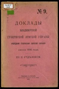 ВЛАДЙМІРСКОЙ ГУБЕРНСКОЙ ЗЕМСКОЙ УПРАВЫ ОЧЕРЕДНОМУ ГОЕРНСШШ 3EMCK0MF СОБРАШЮ сессіи 1916 года. ПО П ОТДѢЛЕНІЮ. Владиміръ на Клязьмѣ. Типо-литографія губернской земской управы. 1917. Ч)