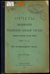 Kp Hto ШХ к ОТЧЕТЫ ^ь^^^^ ЛАДЙМРСКОЙ ГУБЕРНСКОЙ ЗЕМСКОЙ УПРАВЫ очередесму губершому земскому собранію 1910 ГОДА. Ло- ветеринарной части. / -«=^ <ч^ Владиміръ на Клязьмѣ, Типо-литографія губернскои земской управы. 1910.