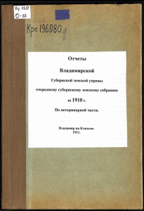 КрсІ96Ш a Отчеты Владимирской Губернской земской управы очередному губернскому земскому собранию за 1910 г. По ветеринарной части. Владимир на Клязьме. 1911.
