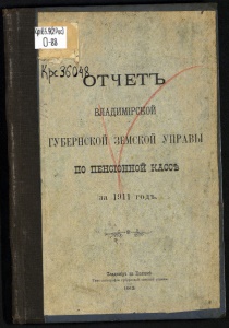 Kp.65.gf2Pot) 0-: . ^зт ТЧЕТЪ ВМДЙШРСКОЙ f ГУБЕРНСКОЙ ^ЕМСКОЙ УПРАВЫ ПО ПЕНСІФННОЙ КАССѢ за 1911 годъ. :^^* = ^ Бладиміръ ка Клязьмѣ. Типо-литографія губернскои земскои управы. 1912.