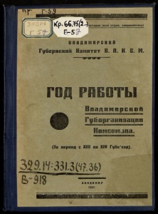 Пролетарии всех стран, соединяйтесь! ВЛЛДИМИРСКИЙ Губернский Комитет В. /1, К, С. М. ГОД РДБОТЫ Владимирской Губортниза оло. (За период с XIII по XIV Губс'езд). ВЛАДИМИР 1927.
