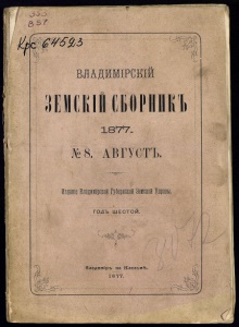 J>N> J? &sr Й w$ : &Ші® ?f ■^ ВЛАДЙМІРСК1Й СБОРІІИКЪ 187*7. №8.-АВГУСТЪ. — c^C<^0^>^= — йзданіе Бладшщской ГуберЕской Земскои Упцавы. ГОЛЪ ШЕСТОИ. 18 77. Г^З: