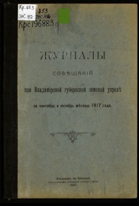 У Л\ У I v H A Л Ы СОВЪШМНІЙ при Владймірской губернской земской рравѣ за сентябрь и октябрь іиѣсяцы 1917 года. Владиміръ на Клязьмѣ. Типо-литографія губернской земской управы 1917.