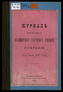 Ѵ^7Ш ЧРЕВВЫЧАИНАГО шщ тташ з[ СОБРАНІЯ б-го Іюля 1891 года. ВлАДИМІРЪ НА КЛЯЗЬМѢ. Типо-Лптографш Гуоерпской Земской Управы, 1891.