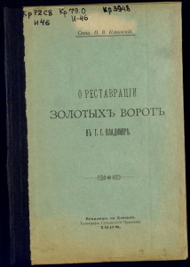 р?2С$ ич& Ѵ:р.79.о Свящ. П. В. Ильинскій. ОРЕСТАВРАЩИ ЗОЛОТЫХЪ ВОРОТЪ № [, [, Г<\ й_ ч*г ж- " с_^у(Г 'Т* Впадиміръ на Кпязьмѣ. Типографія Губернскаго Правленія. 1 9 О 8.
