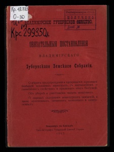 к ОВЯЗАШЫШ ІСШОВШШ в л А д и м I р с к А г о Іукркскаао Вемскаіо Сѳірахія. о мѣрахь іфедупрежденін п ііргкращенш ааразныхъ болѣзней домашнихъ животныхъ, съ наставленіемъ о ілавнѣйшикь свойствахъ и признакахъ этихъ ботЬзней. Объ уборкѣ и уничгоженіи палыхъ живоіныхъ. О іюрядкѣ содержанія живодерныхъ заведеній, а также кожевепныкъ, овчинныхъ, валяльныхъ и салото- пенныхъ ?^ Владиміръ на Клязьмѣ 'Гиис '[июірафіл Губернской Зсмркоіі "\ііііт'>