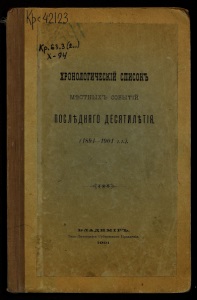 і&42123 ХРОНОЛОГИЧЕСКИ списокъ МѢСТНЫХЪ СОБЫТШ ПОСЛѢДНЯГО ДЕСЯТНЛѢТІЯ. (1891-1901 г. г.). / -*іг$Ф$$*~ Типо-Литографія Губернскаго Правленія. 1901 ■