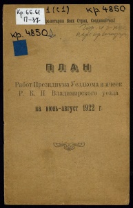 П— Ѵ^ Іролетарии Всех Стран, Соед иняйте сь! чф.ЧЬЪО^ Я и Работ Президиума Уездкома и ячеек Р. К. П. Владимирского уезда ва иювь-туст 1922 г. ш^ш