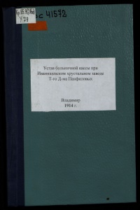 Устав больничной кассы при Иванищевском хрустальном заводе Т-го Д-ма Панфиловых Владимир 1914 г.