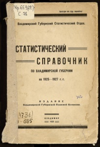 Владимирский Губернский Статистический Отдел. СТАТИСТИЧЕСКИЙ ^^^^^СПРАВОЧНИК ПО ВЛАДИМИРСКОЙ ГУБЕРНИИ за 1925— 1927 г. г. , I і >іѴ ИЗДАНИЕ Владимирской Губернской Плановой Комиссии. ' іѴ7.5б) ■= І -бЗУ =-=