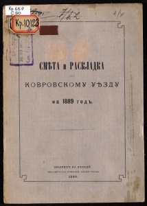 Кр.65.9 СБо по ковровекому уѣзду на 1889 годъ. ВЛАДИМІРЪ НА КЛЯЗЬМѢ. ТИПО-ЛИТОГРАФІЯ, ГУВЕРНСКОЙ ЗЕМСКОЙ УПРАВЫ. 1889. 3