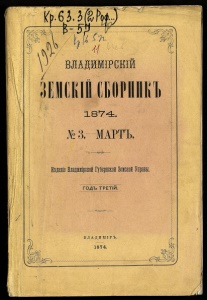 1874- І2 3.-МАРТЪ. ^ - ^5.^3 йздаяіе Владімірскоі Губерскоя Зеіской Управы. "ГОД^трітій Г в I А Д и М I Р Ъ. 1874.