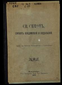 св. симонъ, ттп вмдимірскій и суздаііьсній. Сергія, Архіепископа Владимірскаго и Суздальскаго. В ладиміръ. Типо-Литографія Влад. Губ. Правленія. 1899.