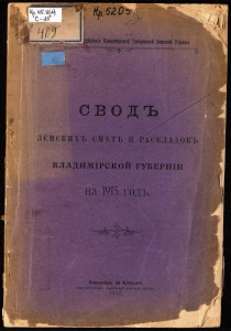 сводъ смътъ по РАСХОДАМЪ ЗЕМСТВЪ Владимірской губерніи на 1915 годъ.