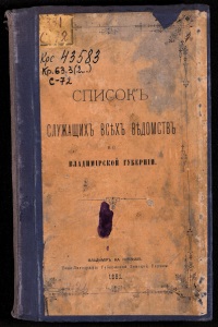 списокъ 0ХЪ всш ведомствв во \ ВЛАДИМІРСКОИ ГУБЕРНІИ. Лр ІЮІ Бладимігъ на Клазьмѣ. Типо-Дитографія Губернской Земской Управы. Ш1.