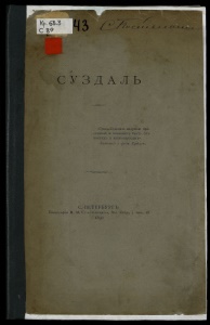 ~% • "- * ^ I : . «ГрадъСуждаль- издревле гіре- - славный и . знаменитъ бысть отъ- многйхъ и многонаррденъ», Лшпрнись о ірадѣ Суздамь.. ОПЕТЕРБУРГЪ Типографія М. М, СтА .рюлЕвиЧА, Вас. Остр., 5 лин., 28 , ■,1891 . . ■