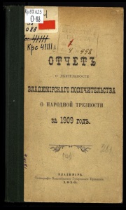 - ■^ГхОХ'\ ^ тп..,.- І5І1 »-.Н ь -:- .. Щ1_. /. ' О Т Ч Е Т Ъ | ; О дБизкеніи сушшТ) и состояніи ижущеотвтз Владишірокаго Уѣвднаго ЕЗошитета ВладимірСБзаго ІІолечительотва о народной тгрезвости. (Гіи;