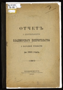 о Т Ч Е Т Ъ о дѣятельности Владимірскаго Попечительства о народной трезвости ва 19 03 годтэ. 1. Владимірскій Губернскій Комитетъ. 1. Въ ]903 году входящими въ составъ Владимірскаго Попечительства о народной трезвости 13-ю уѣздными, і-мъ городскимъ комитетами и 1-мъ особымъ отдѣломъ возбуждено 74 ходатайства, изъ нихъ 43 объ утвержденіи разныхъ лицъ въ званіи членовъ-соревнователей и должности участковыхъ попечителей, 26 объ ассигнованіи пособія-на осущеетвленіе задачъ Попечительства о народной трезвости и 5 по нижеслѣдующймъ предметамъ: а) . Владимірскій Уѣздный Комитетъ ходатайствовалъ о выдачѣ Ставровскому Обществу трезвости въ селѣ Ставровѣ, Владимірскаго уѣзда, 5000 руб. на покупку участка земли и постройку собственнаго зданія для учрежденій Общества. Ходатайство это не разрѣшено, и вопросъ оставленъ открытымъ до- пріксканія Обществомъ трезвости мѣста для постройки. б) Вязниковскій Уѣздный Комитетъ ходатайствовалъ объ зггверя^деніи потомственныхъ почетныхъ