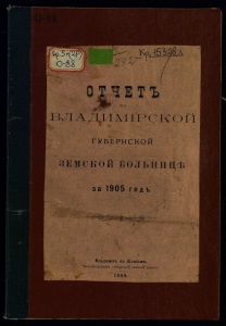 , ! по ВЛАДИМІРСКОЙ ГУБЕРНСКОЙ ЗЕМСКОЙ БОЛЬНИЦЪ за 1905 годъ. ВлАДИИІРЪ НА КЛЯЗЬНѢ. Типо-литографія губернской земской управы. 1906.
