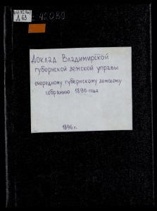Печ. съ разрѣш. р. Владимірск. Губернатора. Губ. гор. Ваадиміръ, 1896 г. Типо-Литографія Губернской Земскои Управы.