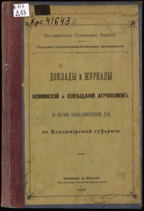 Г— «" Э ІИйиді| г ш Владимірское Губернское Земство. Опытная сельеко-хозяйственная организація. ■й с) - ДОЕЛАІЫ й ІУРНАЛЫ КОММИССІЙ и СОВ-БЩАНІЯ АГРОНОМОВЪ во Владимірской губерніи. Владиміръ на Клязьмѣ. Типо-литографія губернскои земскои управы. 1909. <s>
