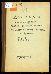 65 рс ^1075 + 2 1. ■ ■ ДОКЛАДЫ ЛЛЕКСАНДРОБСКОЙ УЪЗДНОЙ ЗЕМСКОЙ УПРАВЫ г5 Г ОЧЕРЕДНОМУ УѢЗДНОМУ ЗЕМСКОМУ СОБРАНІЮ 1913 года. &: шш ф : j Владиміръ на Клязьмѣ. Типо-литографія губернской земской управы. 1913.