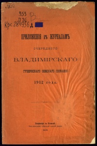 J0 U і/ . 355 ІфсЛд ПРМОШЕНШ ЕЪ ШУРНМАІЪ ОЧЕРЕДНОГО ВЛАДИМІРСКАГО ГУБЕРНСКЛГО ЗЕ1СКАГ0 С0БР1НІЯ 1912 года. Владиміръ на Клязьмѣ. Типо-литографія губернскои земскои управы. 1913.