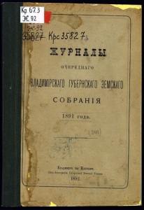 скаго сбора съ нѣкоторыхъ промышленныхъ заведеши по случаго закрытія ихъ. —О сложеніи губернскаго земскаго сбора съ промышленныхъ заведеній Суздальскаго уѣзда, ирекратившихъ свои дѣйствія. —О сложеніи губернскаго земскаго сбора и начислеиной на оный пени по Шуйскому уѣзду. —О сложеніи со счетовъ губернскаго земскаго сбора по Владимірскому уѣзду съ недѣиствовавшихъ торгово-промышленныхъ заведевій. — О сложеніи съ потомственнаго почетнаго гражданина Д. Г. Федоровскаго излишне начисленнаго губернскаго земскаго сбора и накопавшеися за певзносъ его пени. —О сложеніи съ жены губернскаго секретаря Е. И. Протодіаконовой недоимки и пени по губернскому земскому сбору. —По ходатайству Меленковскаго уѣзднаго земскаго собранія о сложеніи—со вдовн почетнаго гражданина М. Ф. Делекторской, мѣщанскои вдовы Л. М. Красновои и дочери канцелярскаго чиновника A. Е. Санницкой губернскаго земскаго сбора и накопввшейсл за невзносъ его пени. —По ходатайству Меленковскаго уѣзднаго земскаго собранія о сложеніи губернскаго земскаго сбора по разнымъ случаямъ. —По ходатайству Меленковскаго уѣзднаго земскаго собранія, о сложеніи съ крестьянъ деревни Азовки Павла и Ивана Семеновыхъ Соловьевыхъ губернскаго земскаго сбора и начисленной за не взносъ его пени. —О сложеніи губернскаго земскаго сбора съ уничтоженнаго красильнаго заведенія купца Пашкова. — О сложеніи съ Юрьевской мѣщанки В. А. Ганшиной губернскаго земскаго сбора. —Объ освобожденіи отъ платежа земскихъ сборовъ земли, подаренной изъ дворянъ дѣвицею А. Н. Шубиною Воскресенско-Федоровскому монастирю. —По прошенію управляющаго заводами товарищества Юрьево-Польской мануфактуре Н. М. Булыгина, объ исключеніи изъ оклада со 2-й половины сего 1891 г. красильнаго заведенія товарищества, за прекращешемъ имъ дѣйствія. —По ходатайству уполномоченнаго отъ крестьянъ селеній Переславскаго уѣзда —Елпатьева, Слѣпцова, Лихарева, Мишутина, Ситницъ и Евстигнѣева, крестьянина дер. Мишутиной Еондратія Алексѣева Артемьева, о сложеніи съ довѣрителей его недоимки губернскаго земскаго сбора 873 руб. 63 коп. —О сложеніи со счетовъ недоимки земскихъ сборовъ съ закрытыхъ и уничтоженныхъ торгово-промышленныхъ заведеній по Муромскому уѣзду. —О сложеніи съ Юрьевской мѣщанки А. И. Локтевой губернскаго земскаго сбора и накопившейся за невзносъ его пени. — О сложеніи недоимки губернскаго земскаго сбора съ дворянина Василія Львовича Катынскаго. —По прошенію крестьянина дер. Чистова, Гороховецкаго уѣзда, Ивана Лаврентьева Сквордова, о переоцѣнкѣ принадлежащей ему вѣтряной мельницы. —По прошенію крестьянина дер. Тамболѣсъ, Меленковскаго уѣзда, Леонтія Савельева Шмелева, о переоцѣнкѣ арендуемой имъ у вѣдомства государственныхъ имуществъ водяной мельницы. —По ходатайству крестьянъ села Пенья, Юрьевскаго уѣзда, о разсрочкѣ имъ упііаты долга продовольственному капиталу. —О разсрочкѣ креотьянамъ дер. Шушериной, Ковровскаго уѣзда, уплаты состоящаго на нихъ долга продовольственному капиталу. —По ходатайству крестьянъ дер. Куликовки, Александровскаго уѣзда, о разсрочкѣ имъ уплаты долга продовольственному капиталу.— О разрѣшеніи на пріобрѣтеніе нѣкоторыхъ