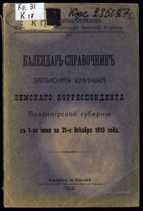 Ш зі Кі? Мѳс тм7ь ВлГт ,- кііи іеское 'Отдѣленіе іь убёрнскбй Земской Управы. TS" Е ЗАПИСНЯЯ книжкя ЗЕМСКАГО КОРРЕСПОНДЕНТА Владимірской губерніи съ 1-го іюхя no 31-е декабря 1915 года. Владимфъ на Клязьмѣ Тішо-Литографія Губернской Земской Управы. 1915.