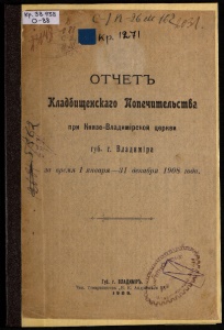о -г» С Кр. I б^і [I \ ОТЧЕТЪ КлаѲЗііщекскаі® ЗІійечишсльсшіа при Князе-Владимірской церкви губ. г. Віадиміра за время 1 ятаря—З! декабря 1908 года. і у ■ -?>•: ~5 -*ёг Тип. Товарищества , В. Е. Андре&втйи К*." у^^^^' 19 0 9. Губ. г. ВЛАДИМІРЪ.
