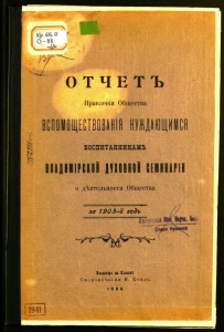 ОТЧЕТЪ Правленія Общества вшщЕСШшт ^ шштшжшшшѣшъ нитгнИ иіііііі сшит о дѣятельности Общества за 19С5~й годъ В.іадиміръ иа Клязьмѣ. Скоропечатня И. Коиль. 19 0 6. 1941 1