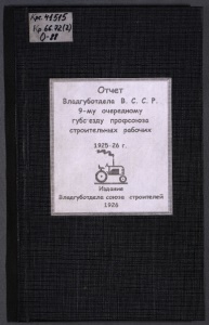 Отчет Влсщгуботдела В, С, С. Р. 9-му очередному гуісвзду профсоюза строитбльншх рабочие 1925-26 г. ХБвЗ Издание 1926