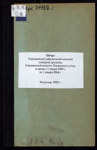 Отчет Короваевской добровольной сельской пожарной дружины, Короваевской волости, Покровского уезда, за время с 1 января 1913 г. по 1 января 1914 г. Владимир, 1915 г.