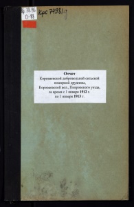 Юре тІА о Отчет Короваевской добровольной сельской пожарной дружины, Короваевской вол., Покровского уезда, за время с 1 января 1912 г. по 1 января 1913 г.
