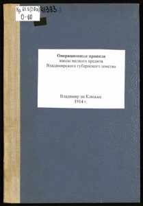 Kp.GS.g^jl^b 0-60 ■ ■ I Операционные правила кассы мелкого кредита Владимирского губернского земства