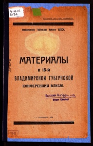 NVb4 Пропетарни всеу страи, соединяйтась! ЕлпдимирскиН Губернский Комитет ВЛКСН. МПТЕРИПЛЫ к 15-й ГУБЕРНСКОИ КОНФЕРЕНЦИИ ВЛКСМ. ЙКіШіи ОійГфГ*. ..Л _і=с4Э г. г. ВППДИМИР-1928