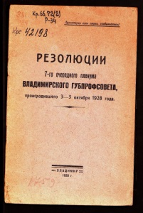 ^ѵлт РЕЗОЛЮЦИИ 7-го очередного пленуш влпдимирснѳге губпрофсоветл, происгсодившего 3—5 октября 1928 года. ВЛАДИМИР , 1928 г.