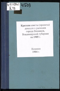 Ц1Ь09 Краткие сметы (проекты) доходов к расходов города Вязников, Владимирской губернии на 1905 г. ^ Вязники 1904 г. «^
